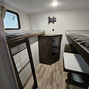 2021- the Salem Lite is a great fresh new-to-us camper that will not disappoint! With a private master bedroom on the opposite side of the cozy bunkhouse, Mom and Dad can get some much needed sleep after a day of adventure. The upgraded mattress will help you feel like you're sleeping at home! With a nice outside kitchen area for fireside snacks, you can enjoy some great moments around the campfire with your family and friends! This camper is our only option for a self-tow. So, if you want to try a road-trip and your vehicle is as least a half-ton in weight, then this would be a fun option for you! The Salem-Lite can sleep up to 8 comfortably.